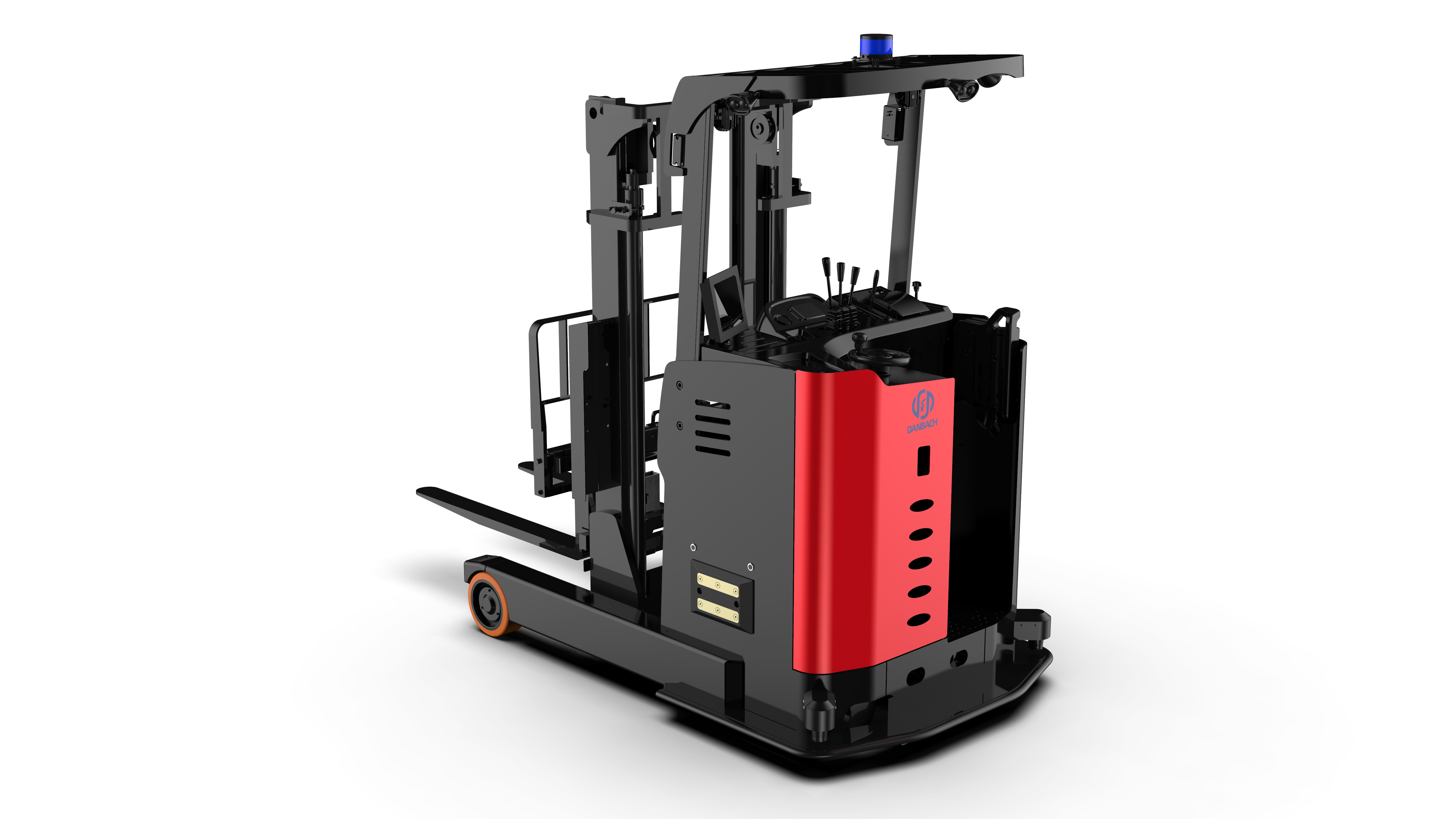 The Danbach C4 L Reach Truck AGV is the standard-fork, high-capacity sibling to the C4 Compact. Where the Compact series prioritizes narrow-aisle footprint, the L series adds standard-length forks, higher drivetrain power, and options up to 3,000 kg (6,614 lbs) rated capacity or 8 m (26.2 ft) lift height—making it the right choice for standard pallet fleets, high-bay warehouses, and heavier rack loads.